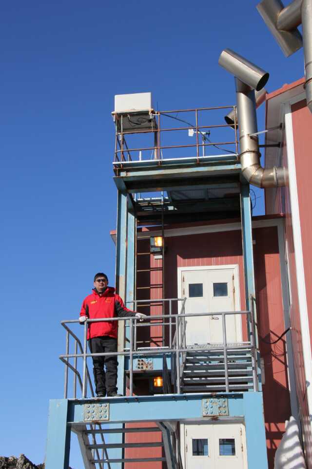 今天是2013年12月28日,整个菲尔德斯半岛(长城站所在地)刮起了8级大风,风速最高时速达到每秒18米。只见窗外飞翔的南极燕鸥,双翅被吹得晃晃悠悠。因不能外出调查采样,我今天就与忘年交队友——中国电波传播研究所英俊年青的科技人员陈其东硕士一道,向你们介绍中国第30次南极考察长城站度夏科考重要项目《南极长城站三频信标——GPS电离层联合监测及电磁环境监测研究》。