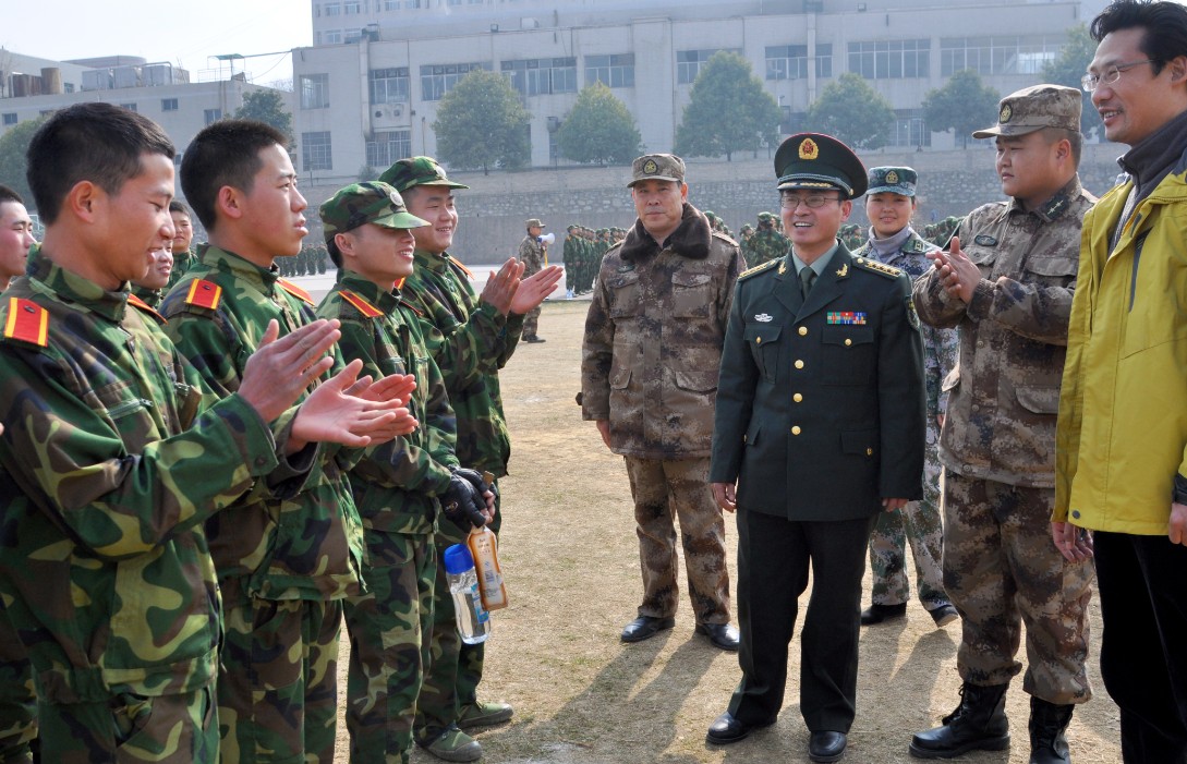 尽管天气寒冷,但两校区的训练场上,几十支军训队伍在教官的指导下精神抖擞,喊声震天,场面蔚为壮观。赵守盈一句句亲切的“同学们辛苦了”表达了学校领导对军训同学的关切之情,同学们则以“为人民服务”的口号做出热烈的回应。