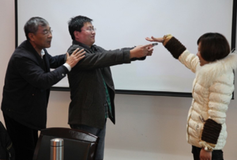 孟教授强调了教学技能训练方法的重要性,指出了教师教学技能的分类和标准,最后以语言技能为示范,对参训教师就站姿、发声、音量、语速、语调、词汇、语法等基本技能进行了训练和示范。参训的青年教师虽然都是具有高学历的高层次人才,但大多数并没有经历过专业的师范教育训练,对于孟教授所谈到的教学技能感到非常的好奇,并具有热情。也正因如此,参训教师们都很认真地投入到每一个训练环节,配合孟教授的节奏和要求做起了训练,整个培训过程都保持了良好的师生互动,参与度很高。孟教授精心的教学设计与参训教师的热情和投入相得益彰,现场展示了一场积极的、参与式的课堂教学实景。