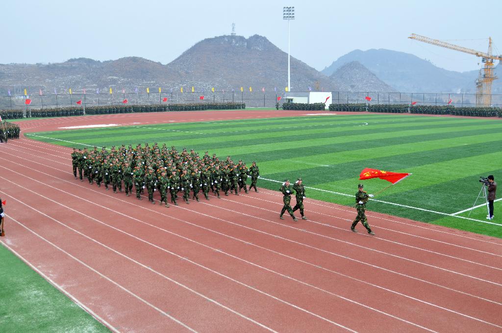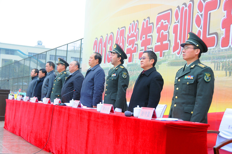 1月5日,我校2013级学生军训汇报表演暨总结大会在宝山校区、白云校区、花溪校区分别举行。校党委书记蒲芝权,副书记邓惠宾,副书记、纪委书记、军训师政委邹克扬,副校长刘肇军、蔡永生、吕国富、赵守盈、乙引及承训部队领导谭勇上校、姚新明上校出席。各学院、各职能部门主要负责人,2013级辅导员及学生近一万人参加。大会由邓惠宾主持。