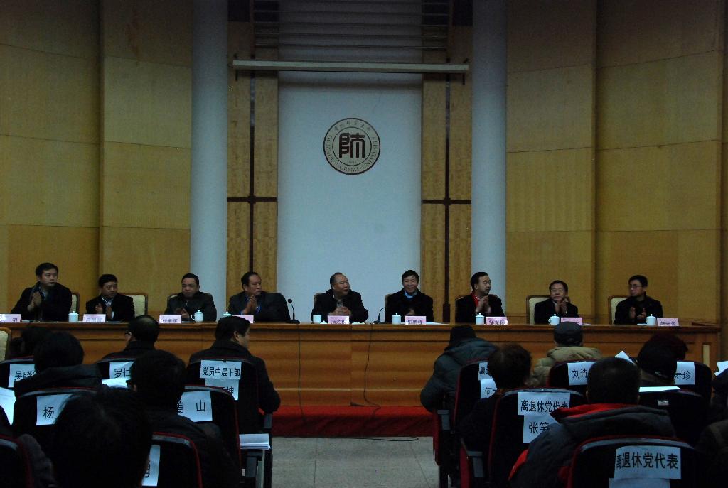 1月10日,学校在田家炳教育书院多功能厅召开2013年度党代会代表及党员中层干部大会。校党委书记蒲芝权代表校党委作题为《凝神聚力谋发展 深化改革促跨越 办好人民满意的高水平大学》的报告。校领导伍鹏程、邓惠宾、邹克扬、刘肇军、蔡永生、吕国富、赵守盈、乙引出席会议。党代会代表及党员中层干部共200余人参加了会议。校党委副书记、校长伍鹏程主持会议。