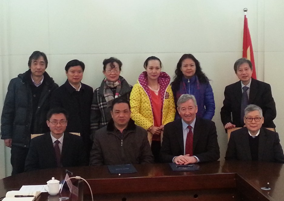 1月16日上午,英国密德萨斯大学代表团一行四人来校访问,副校长刘肇军、赵守盈与该校校长Michael Driscoll教授亲切会谈,学校办公室主任陈云坤、国际交流与合作处处长裴筠、教务处副处长姜山、HND项目部负责人习晓明会见时在座。