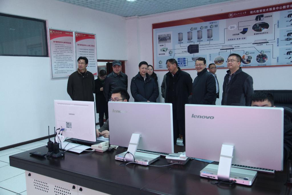 督查组一行在刘肇军的带领下,先后走访了行政楼、教学中控平台、教室、食堂与学生寝室,听取了相关负责人对学校在全面落实开学条件保障、维护校园安全稳定、推进新学期重点工作、后勤服务、新校区建设进度等方面情况的汇报。