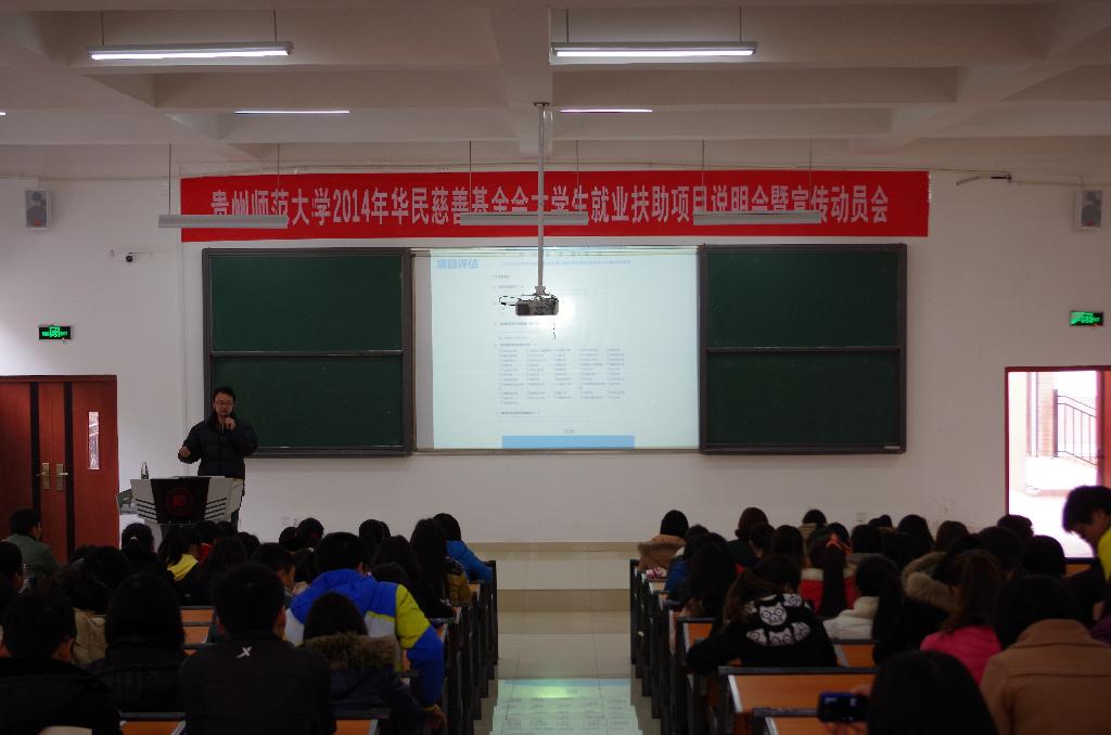 3月13日、14日,学校2014年华民慈善基金会大学生就业扶助项目说明会暨宣传动员会在我校宝山校区、花溪校区正式启动。启动会由学工部奖助学管理科科长袁松主持。申请此资助项目的2011级学生共计400余人参加。