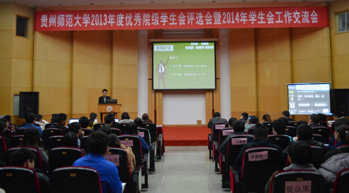 学生会评选工作旨在达到各级学生会“以评促建、以评促改、交流学习”的目的。会上,19个学院主席团分别汇报了本学院学生会2013年的工作,展示了各学院学生会的工作特色。