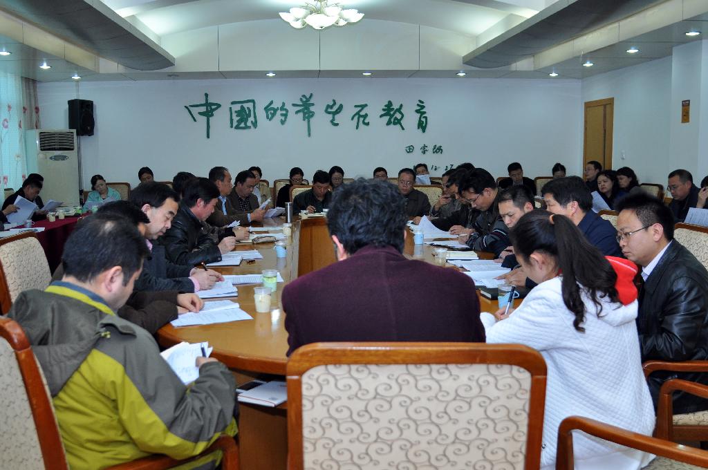 4月9日下午,学校在田家炳教育书院三会议室召开整体搬迁花溪校区工作动员部署大会。校党委书记韩卉,校长伍鹏程,副校长谢晓尧,副书记邓惠宾,副书记、纪委书记邹克扬,副校长刘肇军、蔡永生、吕国富、乙引,各学院(教学部)、各职能部门负责人参加会议。会议由伍鹏程主持。