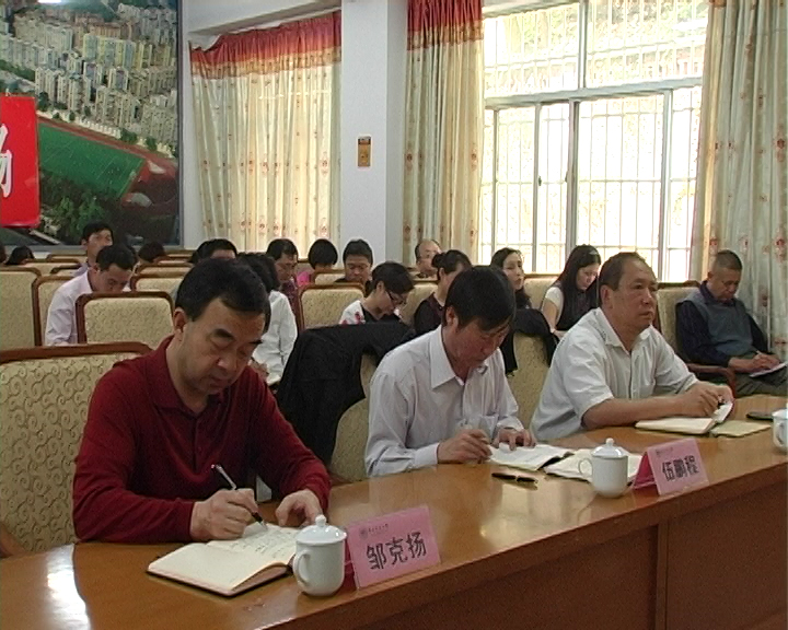 4月15日,学校在田家炳教育书院二会议室组织观看“全省教育系统做焦裕禄式好干部视频报告会”。校长伍鹏程,校党委副书记邓惠宾,校党委副书记、纪委书记邹克扬以及各学院、各部门负责人40余人到场观看。