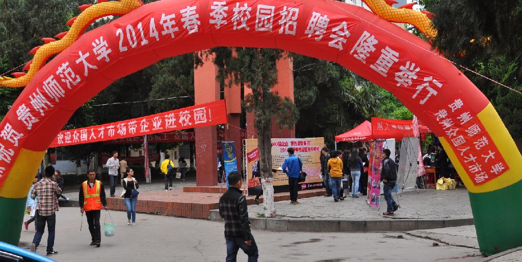 4月25日,由我校和贵州众国人才市场组织共同举办的2014年毕业生校园招聘会在宝山校区晨钟广场举行。此次招聘会共有198家企业单位,涵盖电子科技、教育、饮食、设计等多个专业,共提供相关职位4300个。我校以及周边高校毕业生和在校生来到招聘现场。