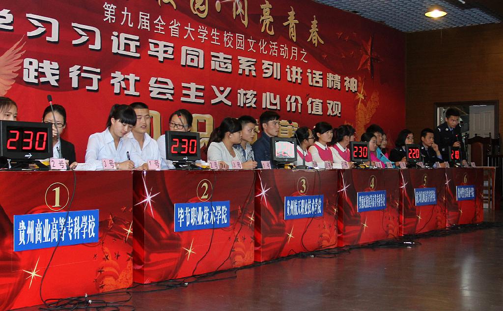 4月27日至28日,第九届贵州省大学生校园文化月活动之贵州省高校“学习习近平同志系列讲话精神、践行社会主义核心价值观”知识竞赛在贵州师范大学举行。据了解,2014年是习总书记视察贵州大学发表重要讲话3周年。党的“十八大”以来习近平同志站在全局和战略的高度,提出了一系列治国理政、兴党为民的新思想新观点新论断,显示了对世情、国情、党情的深刻把握,体现了时代性、规律性、创新性的有机统一,为坚持和发展中国特色社会主义注入了新的内涵,丰富了马克思主义的理论宝库。党的十八大报告明确提出“三个倡导”,即“倡导富强、民主、文明、和谐,倡导自由、平等、公正、法治,倡导爱国、敬业、诚信、友善,积极培育社会主义核心价值观”,这是对社会主义核心价值观的最新概括。正确理解社会主义核心价值观的内涵,深刻把握积极培育和践行社会主义核心价值观的重要性,对于推进社会主义核心价值体系建设,用社会主义核心价值体系引领社会思潮、凝聚社会共识,具有重要的理论意义和实践意义。