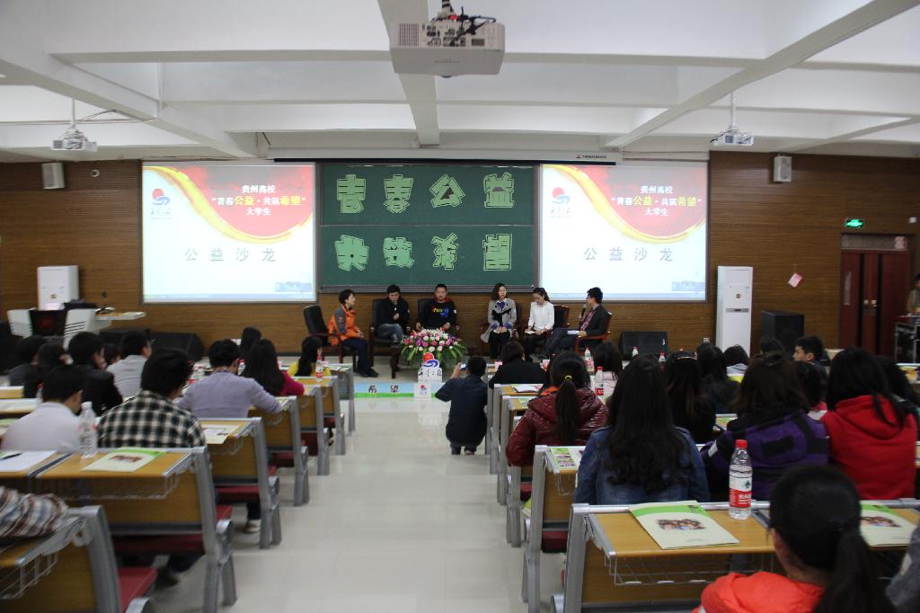 4月29日,“贵州高校希望工程爱心使者联盟成立仪式暨‘青春公益·共筑希望’大学生公益沙龙”在我校花溪校区公共教学楼6302教室举行。团省委副书记涂妍、省青基会秘书长宋静等出席。学校团委部分老师,来自贵州大学等省属十所高校希望联盟指导教师、联盟成员代表及贵州高校公益组织代表共计300余人参加活动。