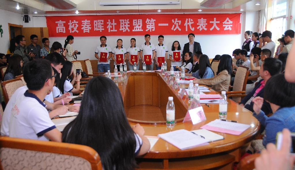 会议首先审议并通过了《高校春晖社联盟章程》、第一届主席团和部门负责人名单及《感恩人生·圆梦中国-在践行社会主义核心价值观中争做“五爱”青年》全国高校春晖社联盟倡议书。随后,吕亚洲向春晖社联盟管理委员指导老师、主席团成员等颁发聘书。主席团汇报了高校春晖社联盟发展区域联盟情况、年度工作计划和高校及地方社团资料整理保存情况。