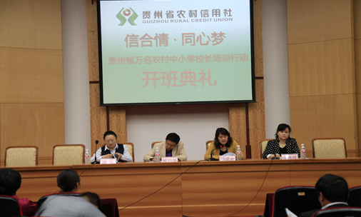 杨建原代表学校对参加此次培训的各位学员表示欢迎。她表示,“信合情•同心梦—万名农村中小学校长培训行动”的开展,为农村中小学校长搭建了学习、交流的平台,为提高我省农村教育质量开辟了新途径。贵州师范大学,是贵州省省属重点大学,具有优秀的师资力量,良好的培训条件,学校将会全力做好此次培训。希望参与组织本次培训工作的领导和老师高度重视,希望参训的学员及时转换角色,认真参训。