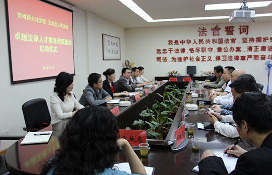 为推进法学院卓越法律人才培养,为司法机关培养更多高素质的法律人才,提高本科教育教学质量,大力提升人才培养水平,5月15日下午,法学院党委书记蒙黎明、院长潘弘、副院长文永辉、学科主任文建明、谢海燕、办公室主任苏醒、党委秘书张盈盈等一行到贵阳市云岩区人民检察院、云岩区人民法院举行“贵州师范大学法学院卓越法律人才教育创新基地”的挂牌仪式,并就人才的培养开展调研。