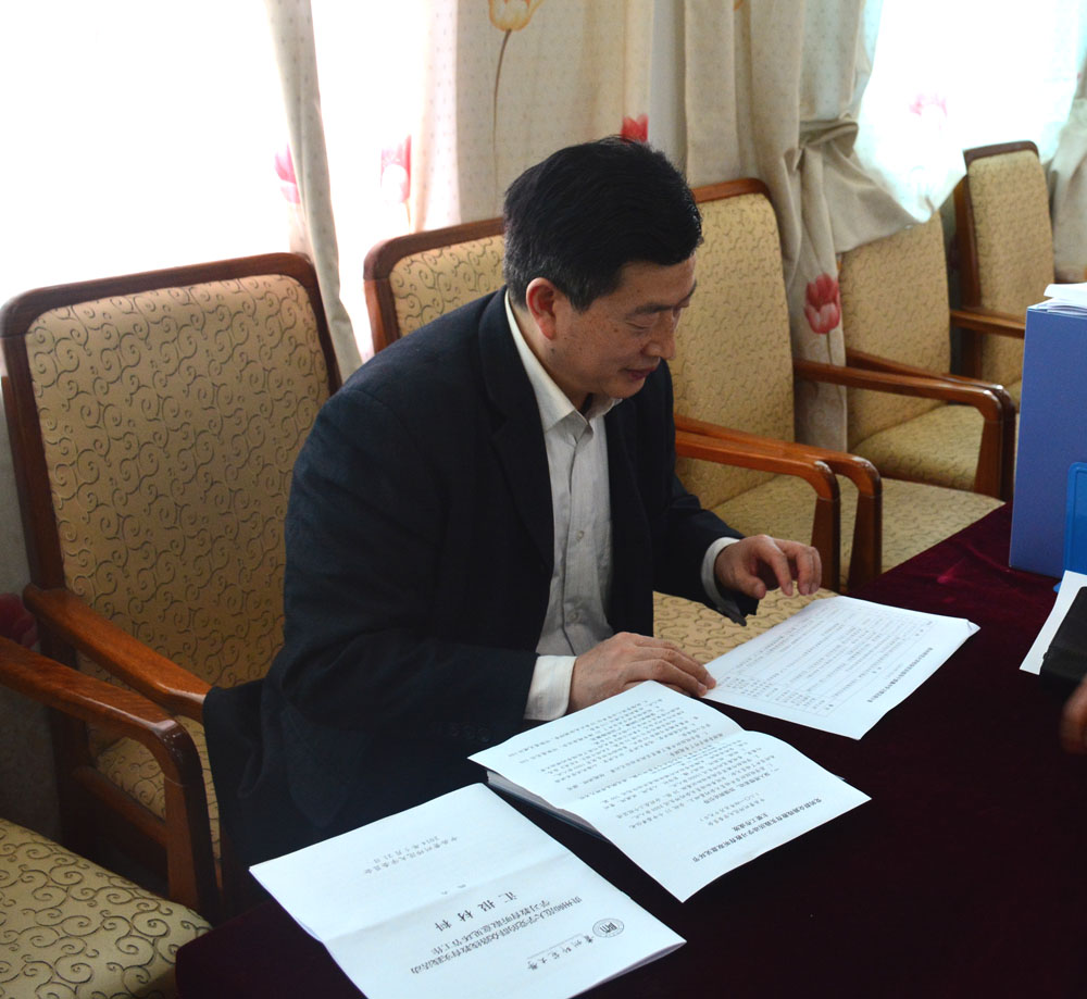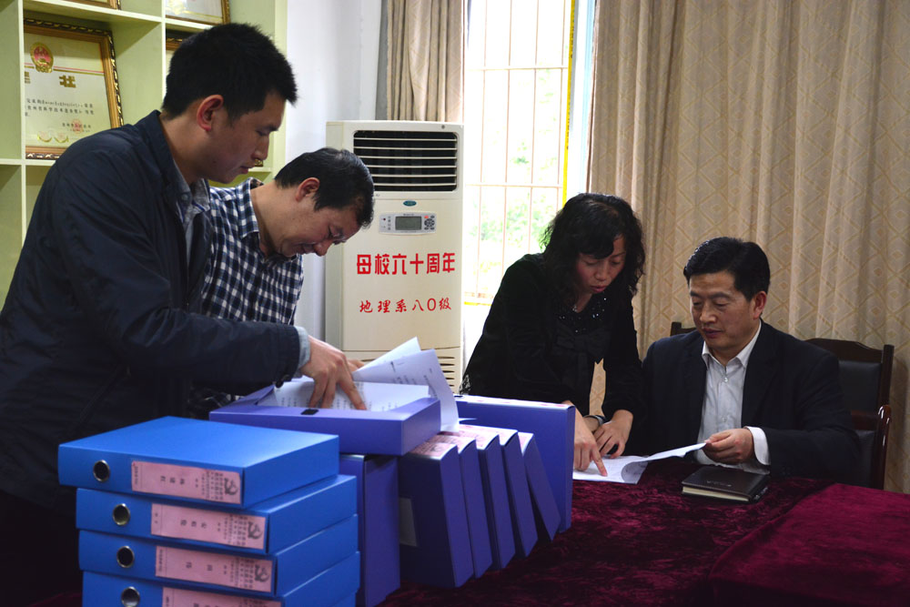 听取汇报会后,高万能和杨元华全面认真地查看了学校教育实践活动档案材料,重点检查了校级领导班子及校级党员领导干部集中学习、听取意见、立行立改等重点工作情况;随后选择并深入到校长伍鹏程教育实践活动联系点地理与环境科学学院,听取了地环学院党委书记杨建红的汇报,查看了地环学院教育实践活动的相关资料。陶平与余龙在学校田家炳教育书院二楼大学外语教学部会议室,组织召开了学校中层党员干部、教师代表、离退休老同志代表、学生代表等共22人参加的座谈会,发放第一环节“回头看”暨评估测评表进行测评。