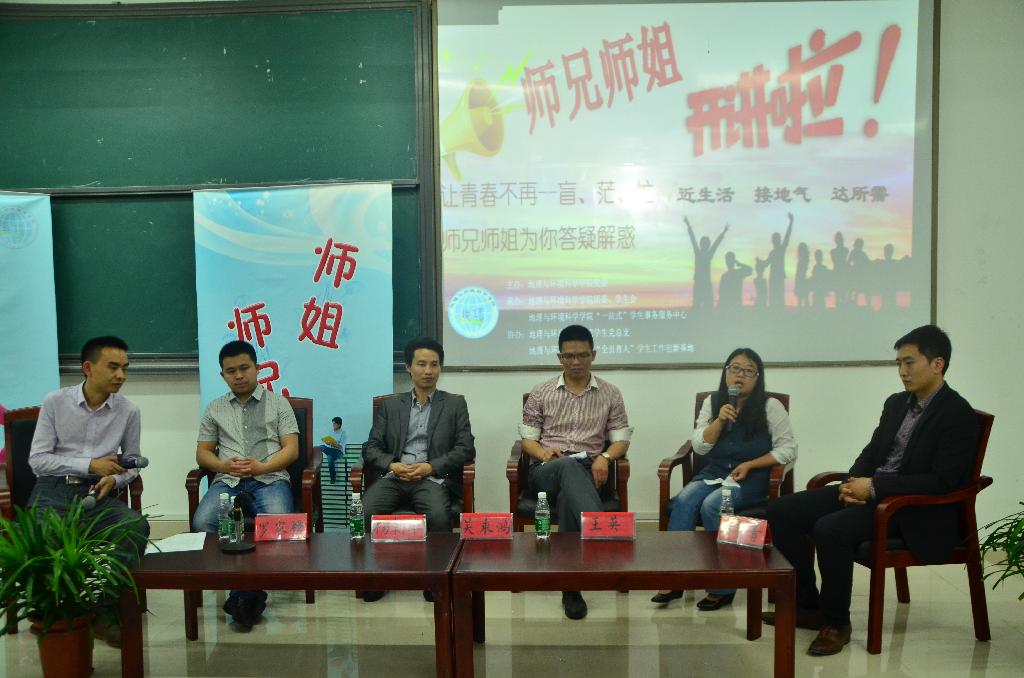 5月22日晚,地理与环境科学学院以“品奋斗故事,明自己未来”为主题的校友面对面——“师兄师姐开讲啦”活动在花溪校区GJ6301举行。中森国际集团(香港)有限公司董事长杨朝雄、中学地理老师王英、师大附中地理老师罗家阳、贵安新区公共资源交易中心负责人吴承鸿、师大地环学院研究生辅导员胡丰青等应邀主讲。学院党委书记杨建红、副书记田伟、组织员郭锐及师生共计300余名参加。活动由学院团委书记施昆主持。
