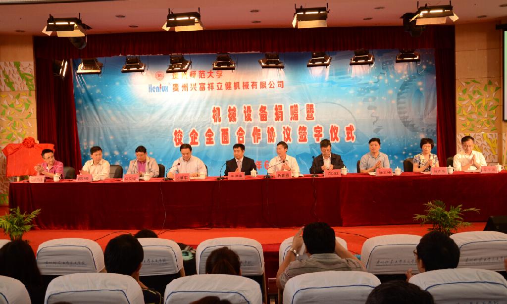 6月5下午,我校与贵州兴富祥立健机械有限公司机械设备捐赠及校企全面合作协议签字仪式在白云校区求是讲堂举行。仪式由我校副校长刘肇军教授主持,校长伍鹏程教授、贵州兴富祥立健机械有限公司董事长彭洪富、总经理范虹、副总经理边文俊以及我校办公室主任陈云坤、白云校区管理办公室主任孙克艳、机电学院党委书记陈椽、院长胡圣波、大学科技园副主任苏明出席仪式,学院全体教师与2013级电气类、机械类全体学生参加了活动。