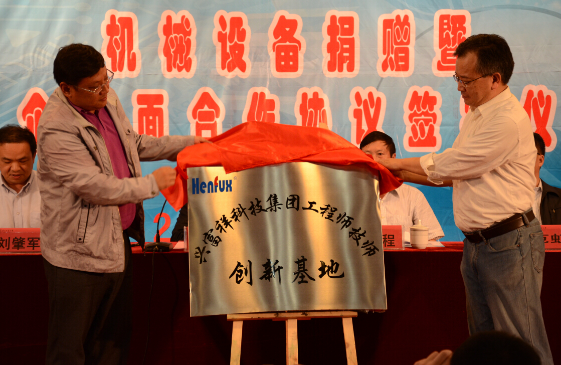 伍鹏程在致辞中介绍了我校的办学历史和发展情况,表示学校将发挥专业优势,抓住工业化与信息化融合的有利时机,重视与企业的沟通、交流与合作。伍鹏程代表学校感谢了兴富祥公司对我校的支持,高度赞扬了企业的发展眼光和社会责任感,他希望双方尽快进入全面务实的实质性合作,本着资源共享、互惠互利、合作双赢的原则加强校企合作,促进学校和公司的共同发展。贵州兴富祥立健机械有限公司董事长彭洪富在致辞中介绍了该公司近年来的发展情况,表达了与机电学院加强校企合作的良好愿望和具体合作意向。伍鹏程代表学校与该公司董事长彭洪富先生签署了《校企合作协议》、《机械设备捐赠协议》,并向贵州兴富祥立健机械有限公司颁发了捐赠证书。