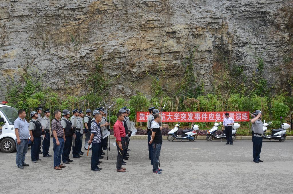 6月5日下午,学校在花溪校区组织开展了突发事件应急处理演练活动。贵州省保安协会秘书长许光忠,大学城社区的服务中心党委副书记万琳、群众工作部主任孙安应邀参加。学校副校长赵守盈担任演练总指挥,保卫处处长钟琪担任现场指挥。