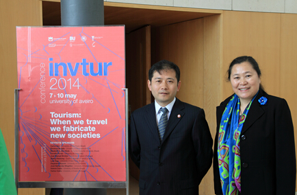 在访问葡萄牙期间,乙引副校长一行在葡萄牙阿维罗市参加INVTUR世界旅游峰会(Invtur International Conference)。INVTUR世界旅游峰会(Invtur International Conference)是以欧盟各国旅游院校及旅游业界专家学者为主体,于上世纪90年代末共同发起的国际旅游高峰论坛,迄今已有10余年历史,是具有较高国际影响力的旅游峰会,迄今尚无中国高校参加该峰会。贵州师范大学作为首个中国大学的代表,与来自其它6个国家的高校一起联合举办“2014INVTUR世界旅游峰会”,充分展示了多彩贵州的魅力。