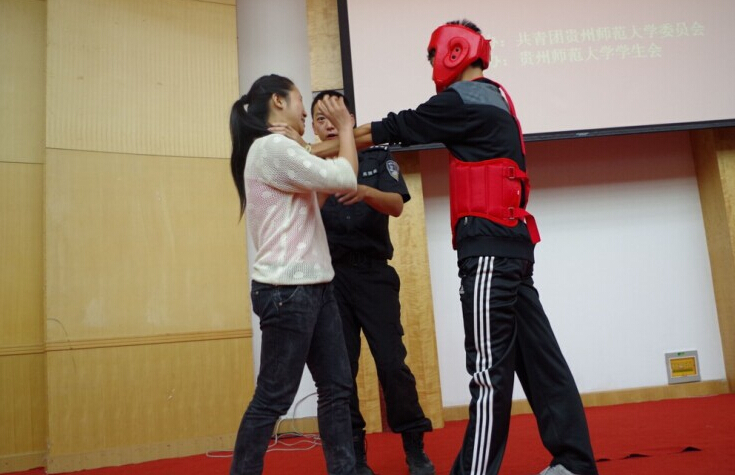 6月11日晚,由校团委、学生会主办的“拿什么保护你——师大女生”之师大女生安全技能培训会在田家炳教育书院三楼多功能厅举行。培训会在来自贵州警官职业学院的教官们表演的“擒敌拳”中开始。