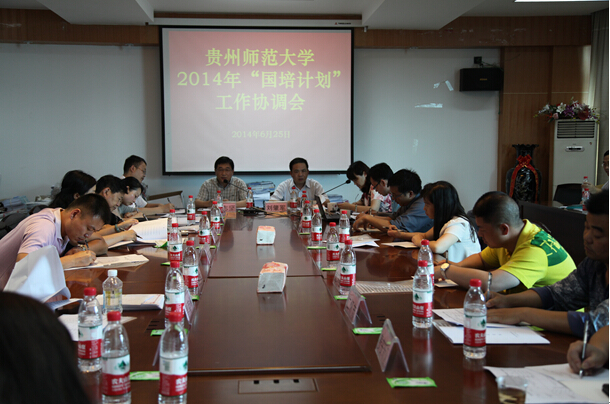 为促进我校国培计划工作的顺利实施,6月25日下午,贵州师范大学2014年“国培计划”工作协调会在田家炳教育书院7楼会议室召开。贵州师范大学国培项目领导小组副组长、副校长刘肇军,贵州省国培项目办主任、教育厅师范处处长蔡志坚,贵州师范大学国培项目办公室主任、教育科学学院党委书记杨建原,贵州师范大学国培项目办公室副主任、教育科学学院副院长穆陟晅,贵州师范大学国培项目办公室副主任、教育科学学院副院长刘军,贵州师范大学教务处处长罗永祥及全省各市(州)教育局的相关领导参加会议。会议由杨建原主持。