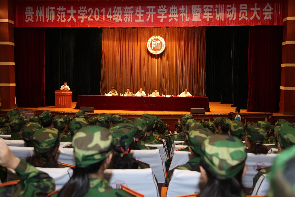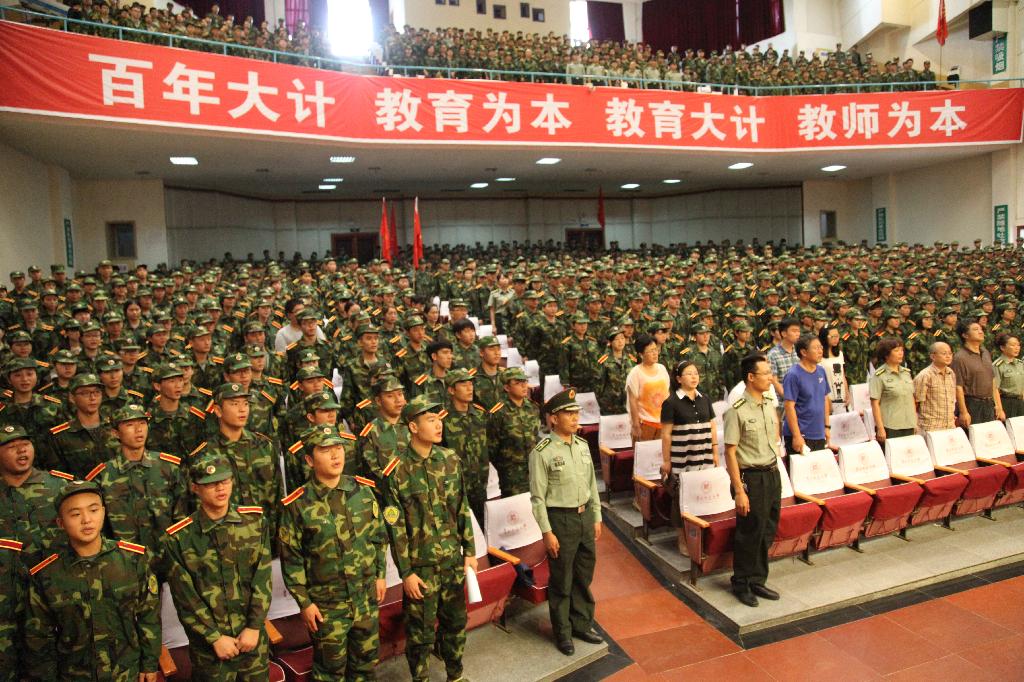 9月14日上午,在宝山校区大礼堂内,一片军绿,着装整齐的新生们一个个意气风发,气宇昂扬地站立在会场,我校2014级宝山校区新生的开学典礼暨军训动员大会在这里隆重举行。