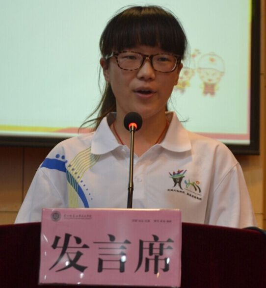 随后,志愿者代表杨冰尔同学发言。她动情的说,志愿者就像泥土,聚集在一起,就成了一座山峰、一条山脉,具有无穷的力量。我们150名同学参与、服务、奉献酒博会,树立了贵州青年的良好形象,自身的专业素养、综合素养、表达能力等方面也有了显著提升。今后我们将书写求是学子投身社会事业的新篇章,用实际行动践行社会主义核心价值观。