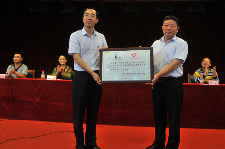 9月29日,贵州省志愿服务联合会副秘书长、志愿者行动指导中心主任邓守成,副主任余跃,专程来到求是学院,代表中国(贵州)国际酒类博览会执委会、贵州省志愿服务联合会,向求是学院致送感谢状,感谢求是学院志愿服务队在第四届中国(贵州)国际酒类博览会的优质高效服务。求是学院党委书记战勇代表学院接受感谢状。