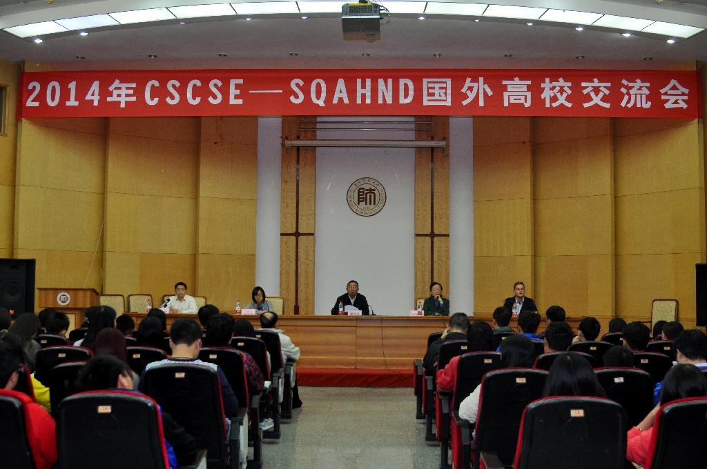 10月14日,我校在宝山校区田家炳教育书院三楼多功能厅举行2014年英国高等教育文凭项目(CSCSE-SQA HND)国外高校交流会。英国伯明翰城市大学、赫尔大学、牛津布鲁克斯大学、普利茅斯大学、切斯特大学、提赛德大学、约克圣约翰大学、加拿大皇家大学等高校代表应教育部留学服务中心邀请来校参加交流会,为HND项目学生现场答疑解惑,讲解国外最新的留学申请和签证政策。