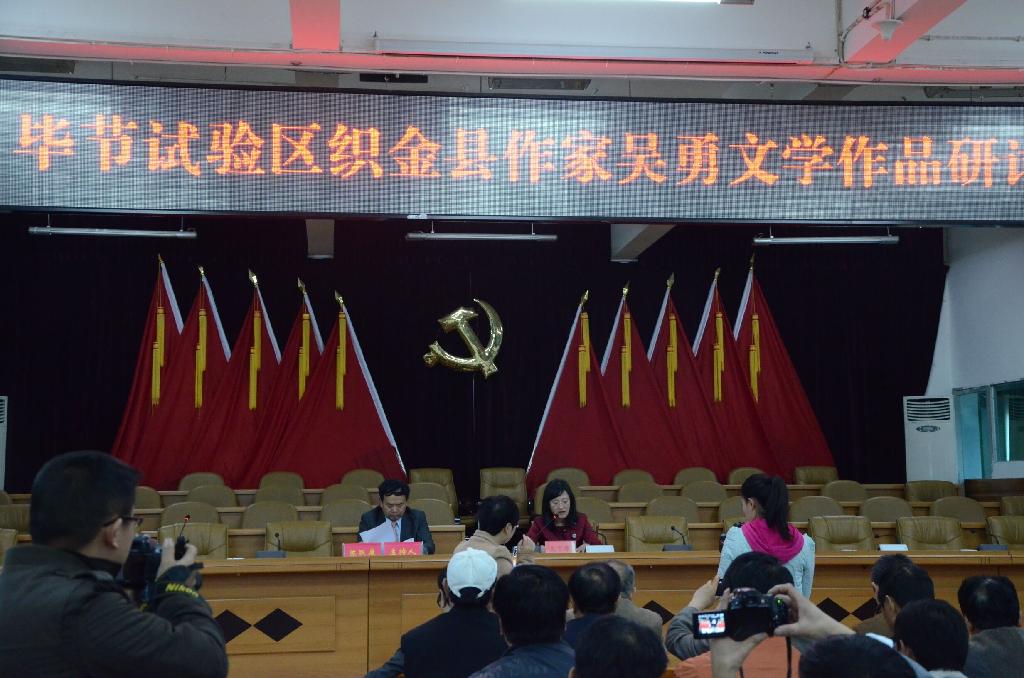 18日上午,贵州省中国现当代文学学会在织金县县委会议厅举行吴勇文学作品研讨会。会议由贵州省中国现当代文学学会副会长、织金县县委副书记陈跃康主持。织金县委常委、副县长姜念、张勇,县委宣传部副部长、县文联主席李成勇,县委统战部副部长马列,织金县文联副主席詹贵祥等出席会议。县文联各协会代表等近百人参会。织金县政协主席袁家艺代表县委、县政协致欢迎辞,并领学了习近平总书记在文艺工作座谈会上的讲话精神。