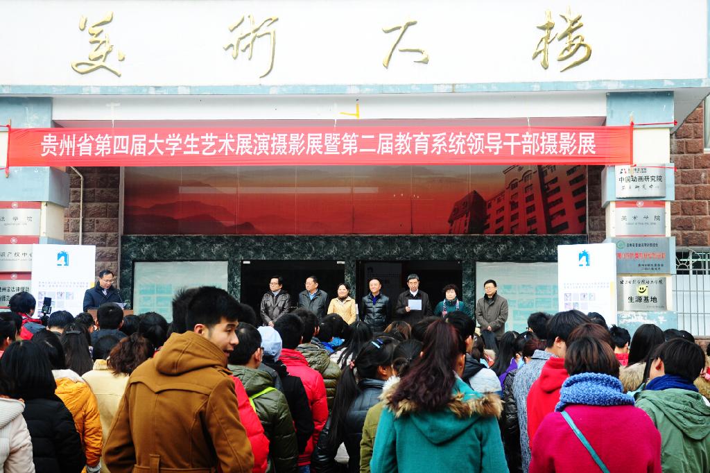 摄影展开展仪式在我校美术大楼门口举行。开展仪式由教育厅体卫艺处处长胡锐主持。我校校长李建军致欢迎辞,贵州省委教育工委副书记李涛发表讲话,贵州省政协副主席、我校副校长谢晓尧宣布摄影展开展。