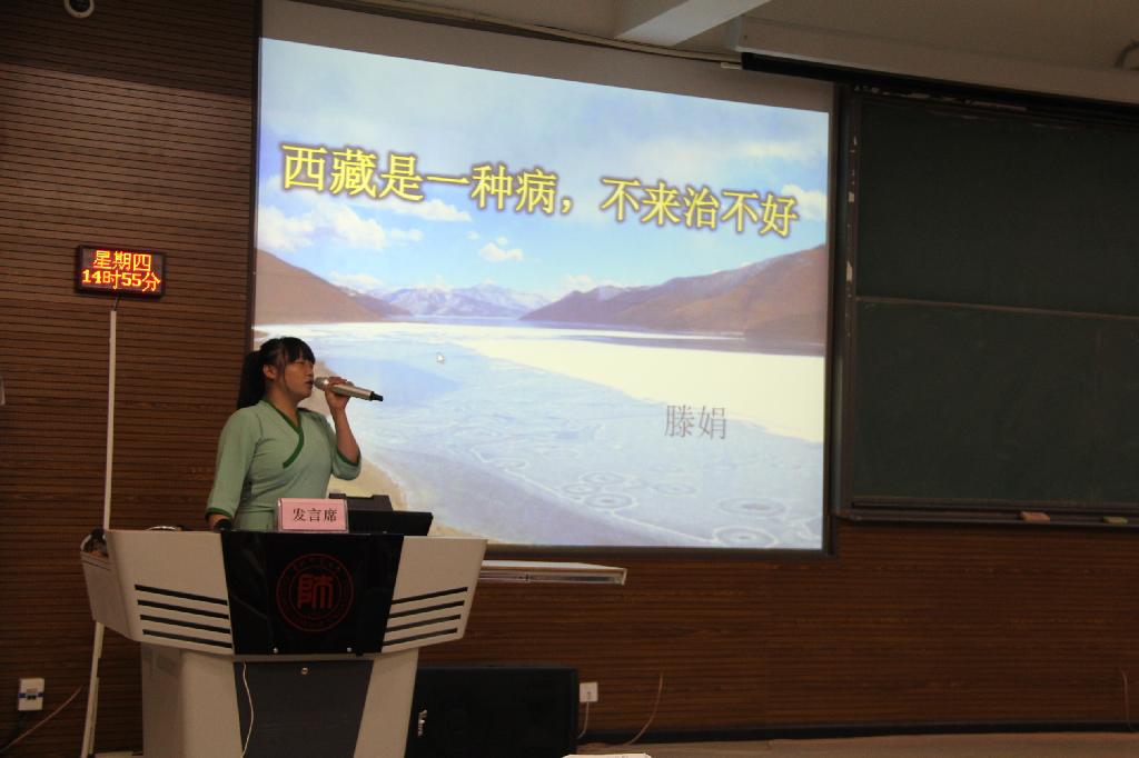 宣讲会首先用精心制作的视频短片吸引了现场所有人的注意力,宣讲团副团长扎西德玛介绍了大学生自愿服务西部计划服务西藏的相关政策解读。特别对经费保障(生活费、交通费)、综合保障保险、服务期限做了详细介绍。