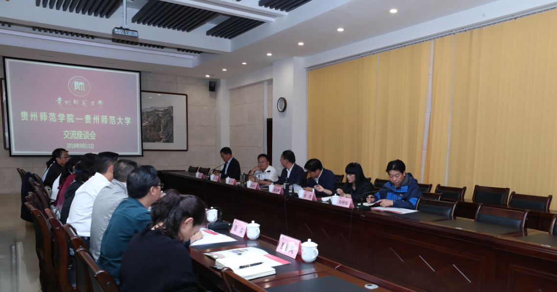 9月11日,贵州师范学院党政办主任芦军一行来校交流座谈,校纪委书记唐本文、副校长陈云坤在花溪校区行政楼主楼六楼会议室接待来访客人。两校相关职能部门负责人参加。