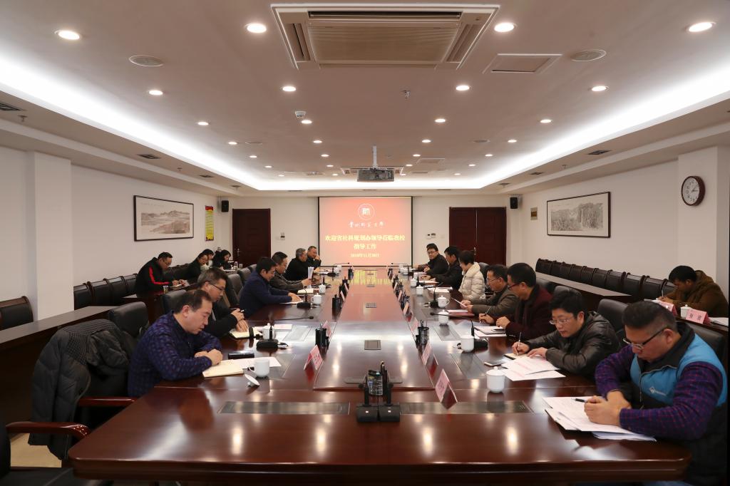 11月20日下午,贵州省哲学社会科学规划办公室主任李胜、副主任钟西辉一行莅临我校,就我校哲学社会科学工作开展情况进行调研。我校各文科学院、省人文社科基地主要负责人及社科处全体人员参加会议。会议由社科处处长杨斌主持。
