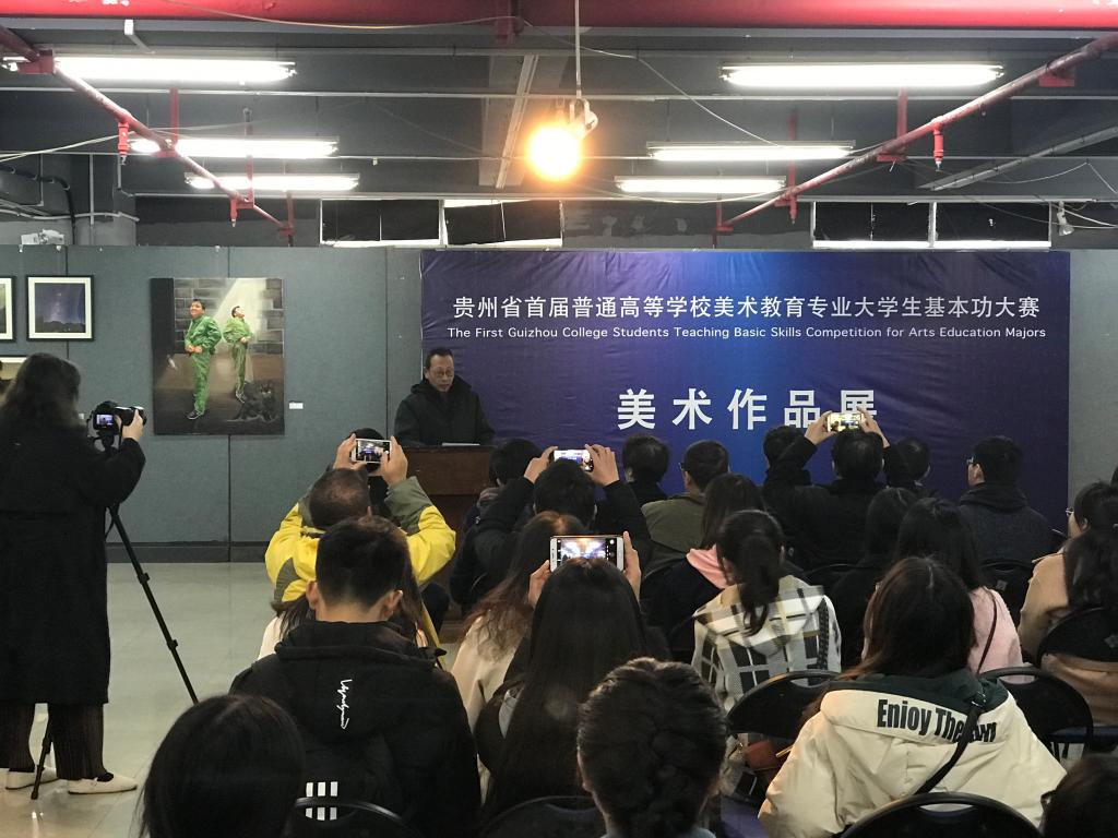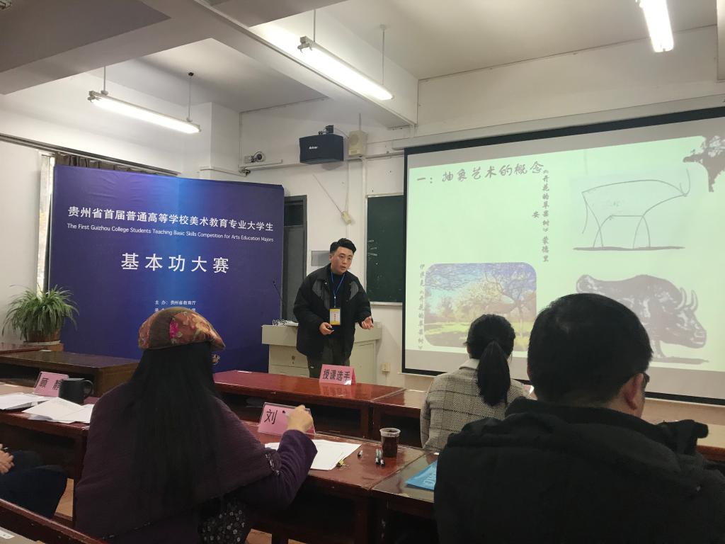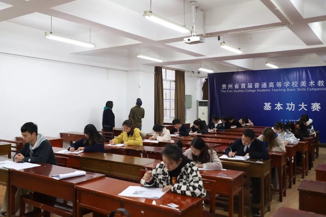 为贯彻《省人民政府办公厅关于进一步加强和改进学校美育工作的实施意见》文件精神,促进师范类艺术院校(系)培养适应中小学美育需求的专业师资,进一步加强我省美育师资队伍建设。11月24-25日,由贵州省教育厅主办,贵州师范大学承办的贵州省首届普通高等学校美术教育专业大学生基本功比赛在贵州师范大学美术学院举行。来自贵州省各本专科院校组成的27支队伍参赛,比赛内容包括基础理论知识、美术作品展示、美术教学技能。