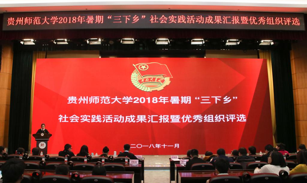 11月23日,我校2018年暑期“三下乡”社会实践活动成果汇报暨优秀组织评选会在我校花溪校区会议中心一楼举行。学校办公室,学生工作部,校脱贫攻坚综合协调办公室,校团委领导及各学院党委副书记参会并担任评委。