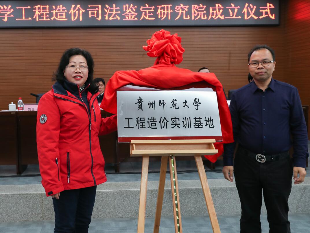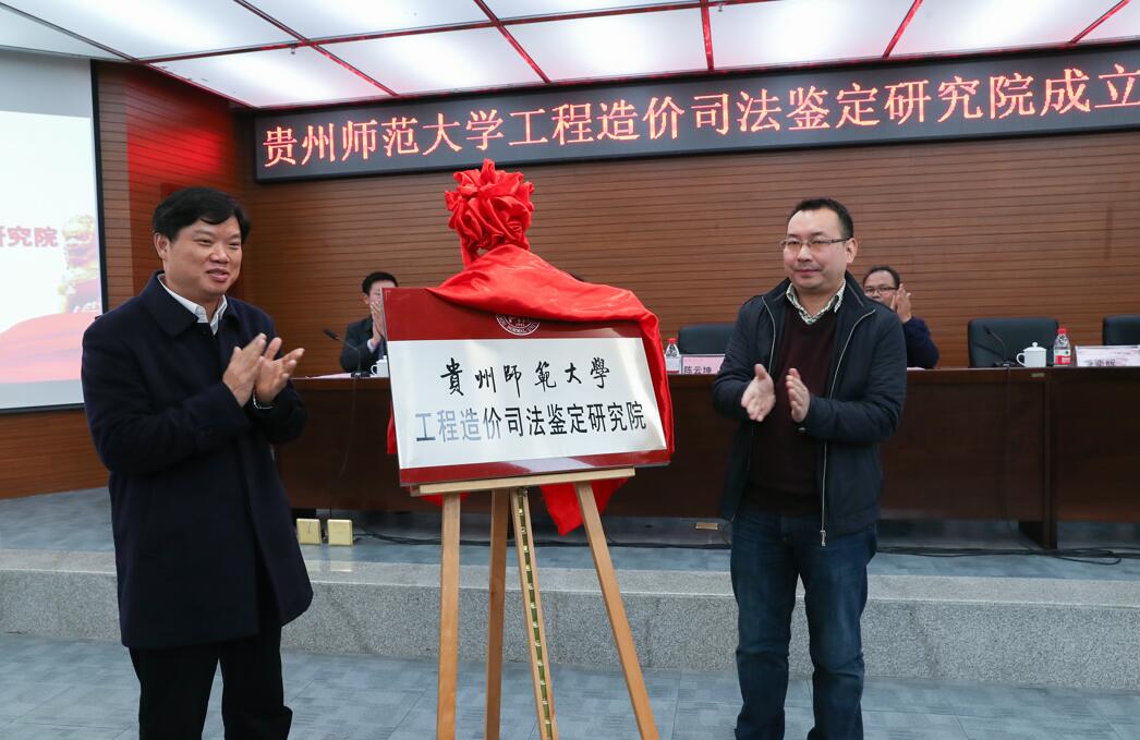 陈云坤和曾奕辉共同为“贵州师范大学工程造价司法鉴定研究院”揭牌。