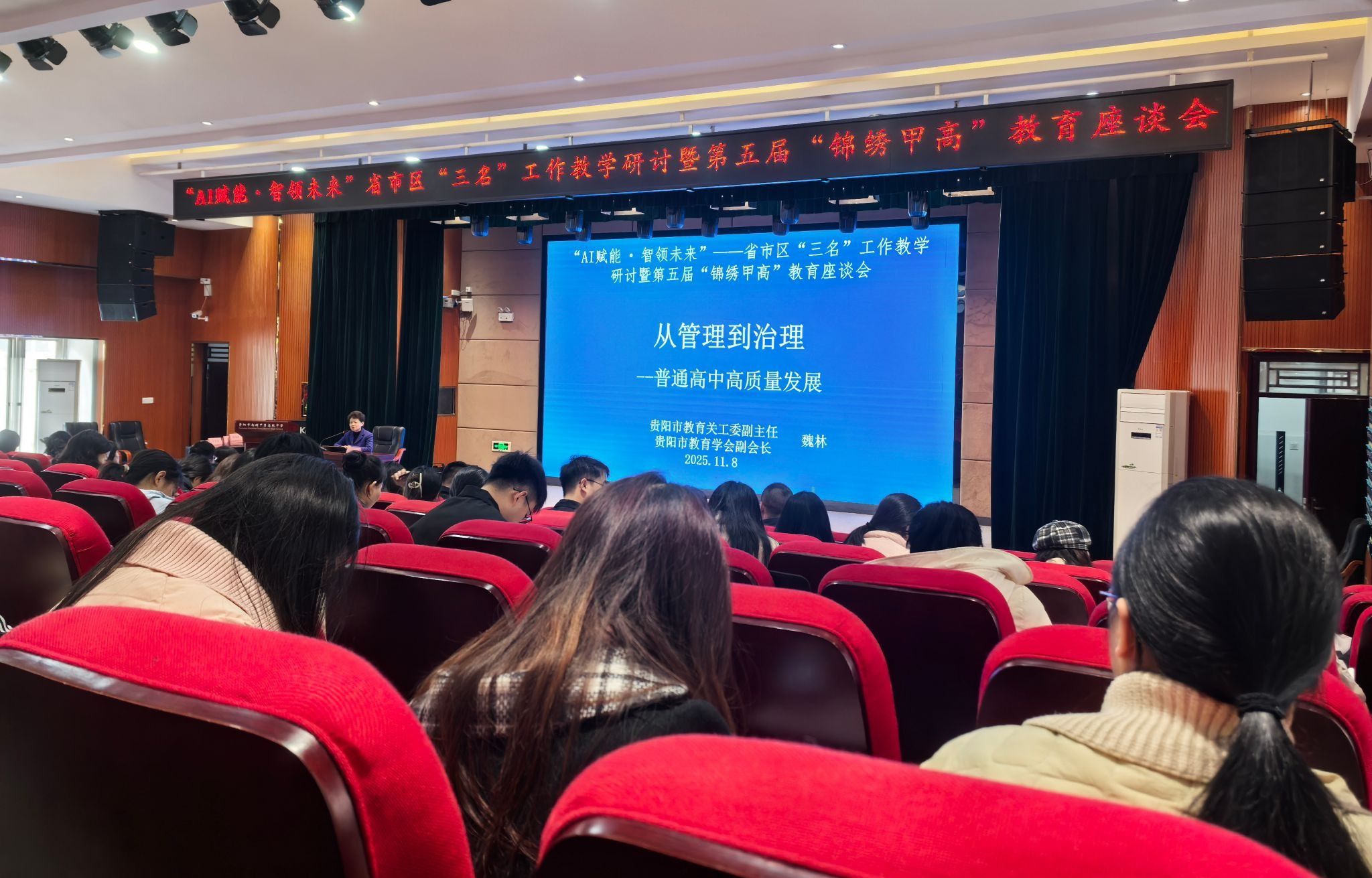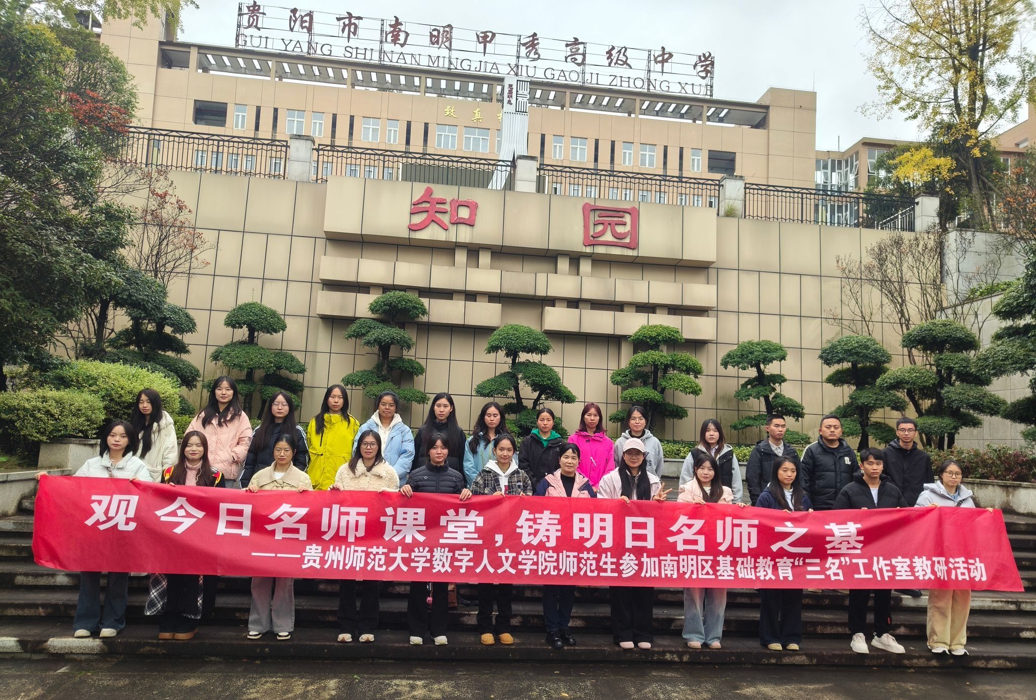 11月7日-8日,数字人文学院组织100余名师范生,参加南明区教育局主办的“AI赋能•智领未来”——基础教育“三名”工作室教研讨活动,旨在夯实师范生教学理论基础,引导其关注基础教育教学发展前沿,促进职前准教师理论与实践深度融合,加速专业成长步伐。