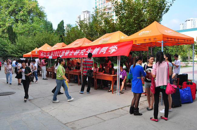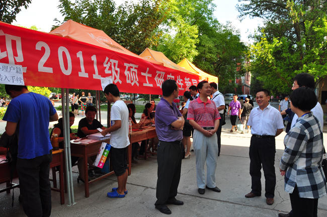 9月14、15日,我校2011级研究生报到工作在研究生处和各培养学院陆续展开。今年共招收各类硕士研究生共736人,招生规模有所提高。为了方便新生顺利报到,研究生处联合宿管中心、户籍中心等部门在研究生处楼下集中办理入学报到手续,在老师们高效有序的办理下,报到工作开展得十分顺利,仅14日一天就办理入学500余人。