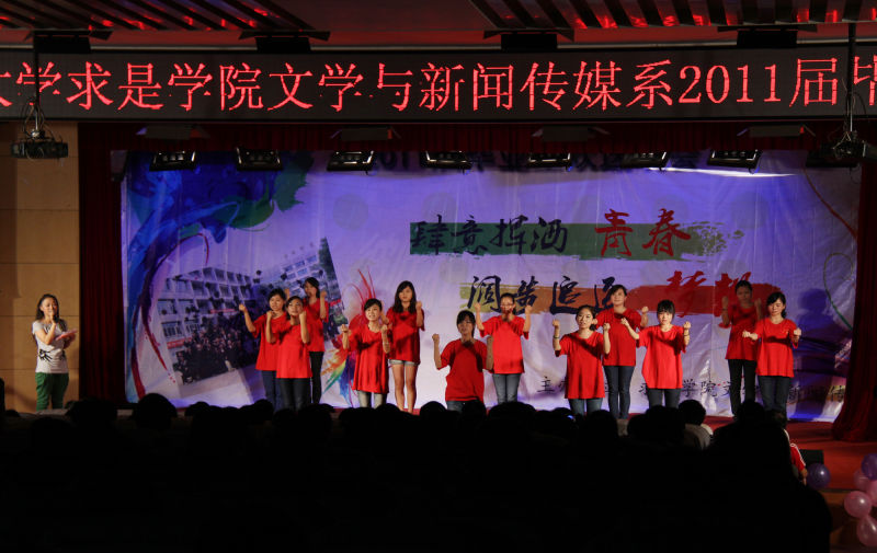 2011年6月18号晚上,由贵州师范大学求是学院文学与新闻传媒系主办的“肆意挥洒青春,阔步追逐梦想”毕业晚会在求是讲坛举行。出席此次活动的有求是学院党委书记战勇,党委副书记吴大军,文传系主任李玉芬以及学院师生代表。