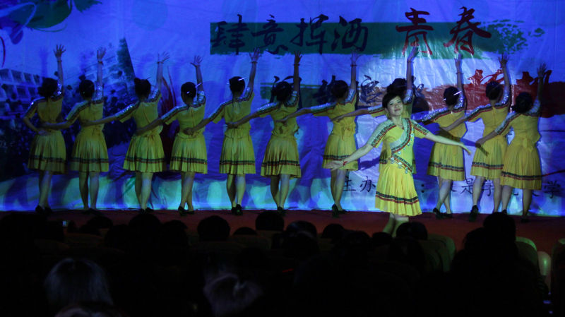 此次欢送晚会由劲爆的开场舞拉开序幕,接着便是活力十足的啦啦操表演。该系同学结合自身特色,表演了话剧,舞台剧及朗诵等节目,会场不时传来动人的歌声,最后一首全体大合唱《祝福》为此次毕业晚会划上了圆满的句号。