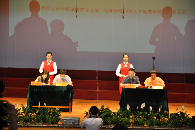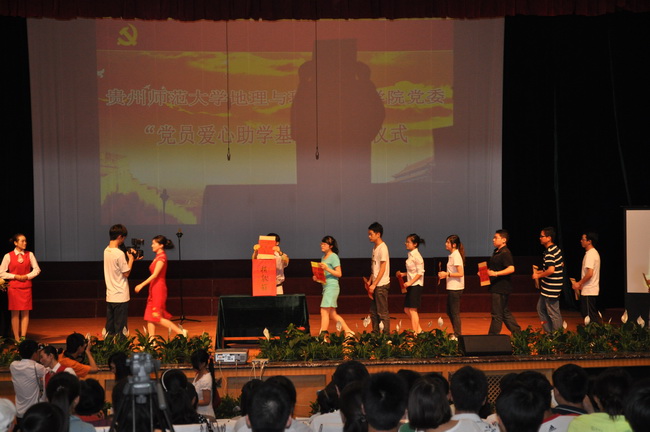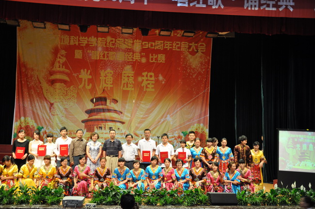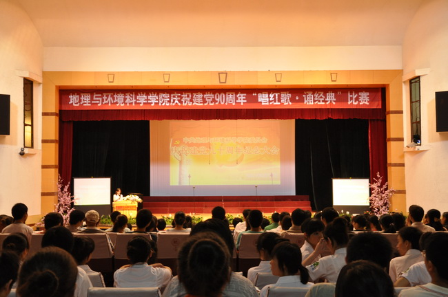 “永远跟党走”,地环学院全体师生用实际行动来践行此诺言。经一个多月的精心筹备,2011年6月17日下午两点半,贵州师范大学地理与环境科学学院庆祝建党90周年纪念大会暨“唱红歌,诵经典”大赛在学校大礼堂隆重举行。学院全体党政领导及校团委、校人事处、校宣传部、学报编辑部和各兄弟学院党委老师及学生干部等出席了本次纪念大会。