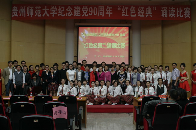 2011年5月17日晚,由文学院主办的纪念建党90周年“红色经典”诵读比赛在田家炳教育书院三楼多功能厅成功举行。出席活动的有校党委组织部副部长岳岚,校党委宣传部副部长李俊,校团委副书记姚作舟,校工会副主席丁敏,院党委书记黄葵,院长易闻晓,副院长湛芬,副院长史光辉,院党委副书记陈明,各学院团总支、学生会的代表、文学院各班辅导员也光临了比赛现场。