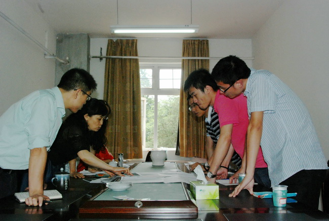 档案馆人员与实验室技术人员正在就雪涯路校址“复原”问题进行交流