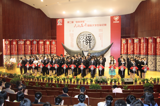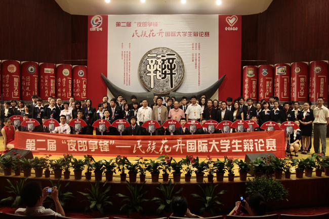 6月10日上午,第二届“夜郎争锋”——民族花开国际大学生辩论赛在我校国际音乐厅隆重开幕。来自香港大学、澳门大学、马来西亚国能大学、贵州大学、贵州民族学院、贵州师范大学等16支国内外大学辩论队伍参加比赛,中华名辩盟的评委专家们担任本届辩论赛评委。我校党委书记蒲芝权,省委宣传部副部长、第九届民族运动会新闻宣传部副部长周晓芸,共青团省委副书记、省志愿者协会理事长、第九届民族运动会筹委会志愿者工作部副部长马雷,我校党委副书记褚光荣,省志愿者行动指导中心主任、第九届民族运动会筹委会志愿者工作部办公室常务副主任宋静出席开幕式。共青团贵州省委常委、学校部部长刘锐主持开幕式。