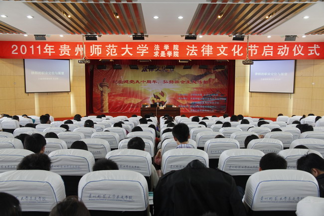 2011年5月6日下午,由贵州师范大学法学院党委、求是学院党委主办,法学院、求是学院法律经管系团总支学生会青分会承办的“纪念建党九十周年,弘扬社会主义法制”为主题的第六届法律文化节在白云校区求是讲堂举行启动仪式。校党委副书记褚光荣,学工部部长彭洁,校团委书记李娅,法学院党委书记蒙黎明,求是学院党委书记战勇等领导出席了启动仪式。贵阳宇泰律师事务所的三位资深律师,以及各学院师生代表也参加了会议。