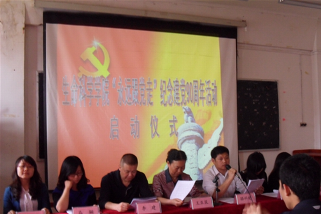 为纪念建党90周年,宣传党的光辉历程,颂扬党的丰功伟绩,激发广大党员立志成才、报效祖国,永远跟党走的信心和决心。2011年4月27日下午,生命科学学院在学院七楼703教室举行了“永远跟党走”纪念建党90周年活动启动仪式。生命科学学院党委书记王亚筑、党委副书记李建、各年级辅导员和全体学生党员参加了此次启动仪式。