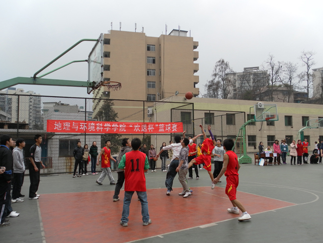 为丰富学子校园文化生活,展示大学生的运动风采,进一步加强校园体育文化建设,提高学生的身体素质,培养团队合作意识,展现大学生积极向上的精神风貌。2011年3月31日下午四点半,地理与环境科学学院在校篮球场开展“欢送杯”篮球赛。