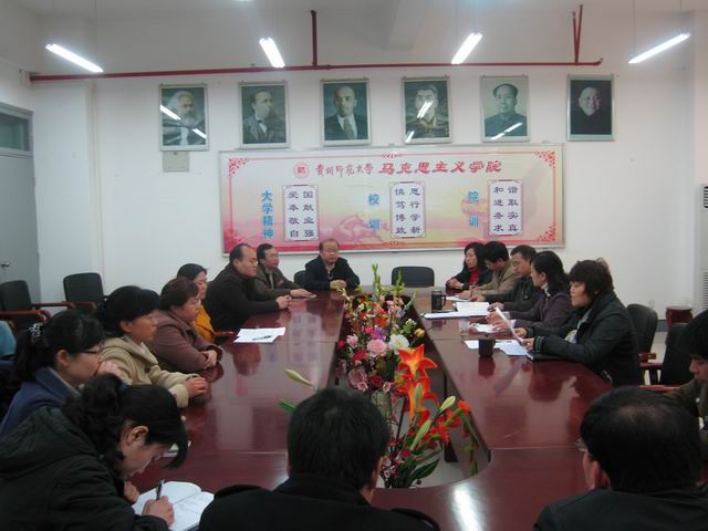 2011年4月1日下午,中共贵州师范大学马克思主义学院总支部委员会党员大会在马克思主义学院会议室隆重召开,会议议程主要有两项:一是由马克思主义学院党总支书记杨文武代表上届委员会作工作报告;二是选举产生新一届马克思主义学院党总支委员。学校组织部副部长岳岚出席会议并指导工作,学院34名党员参会。会议由马克思主义学院院长欧阳恩良主持。