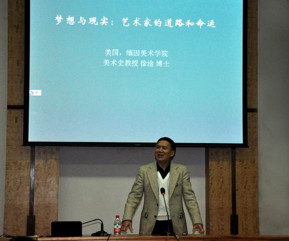演讲者是美国缅因州美术学院史论系主任徐淦博士、教授。贵州师范大学客座教授。4月7日下午举行的这场“梦想与现实—艺术家的道路和命运”讲座,吸引了我校美术学院全体师生以及其他学院部分师生共300多人前来聆听。